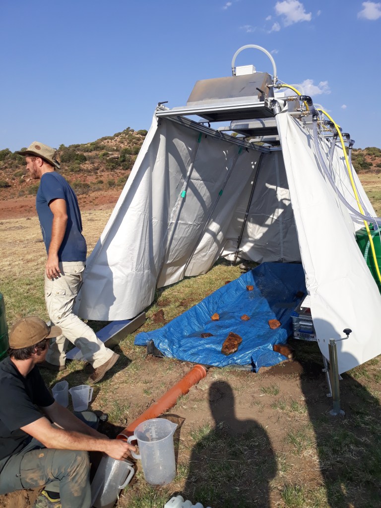The rainfall simulator in action in Ladybrand Veröffentlicht am 20. September 2019 von jussi.baade@uni-jena.de